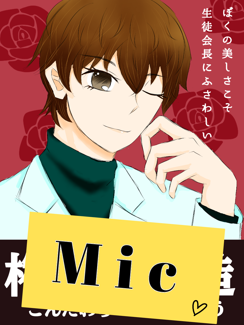 名前の主張のしかたがすばらしい! Micの性格が伝わってくるポーズと表情ですね。