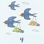 カエルさんとくまさんが渡り鳥のツバメに運んでもらっているよ。