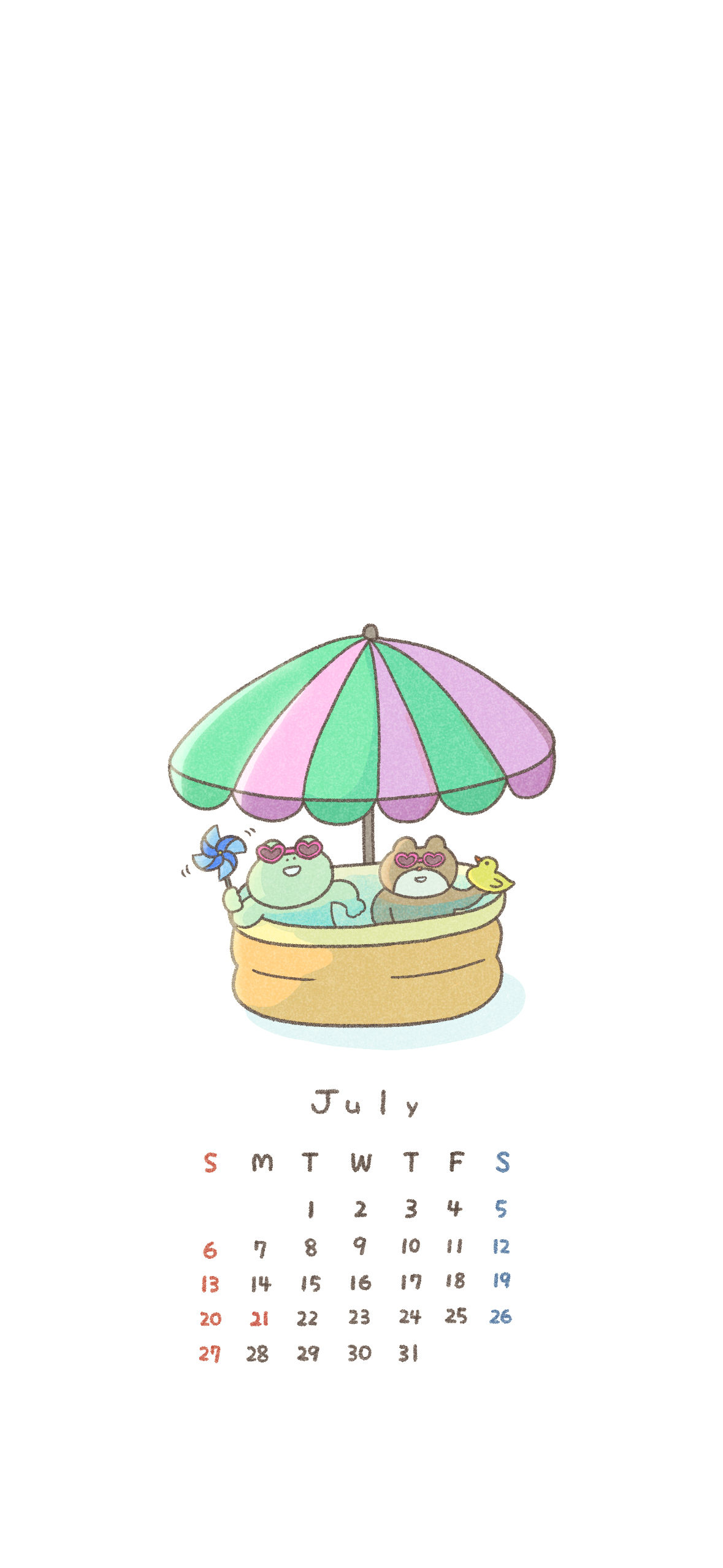 カエルさんとくまさんから、7月のカレンダーをプレゼント!