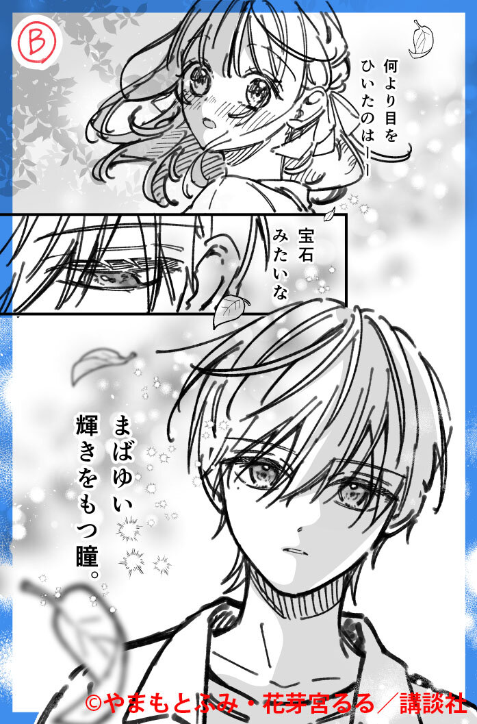 からかうようなきらめく瞳の蒼井くんに「どきっ」としているような菜乃葉の表情にも注目だよ。
