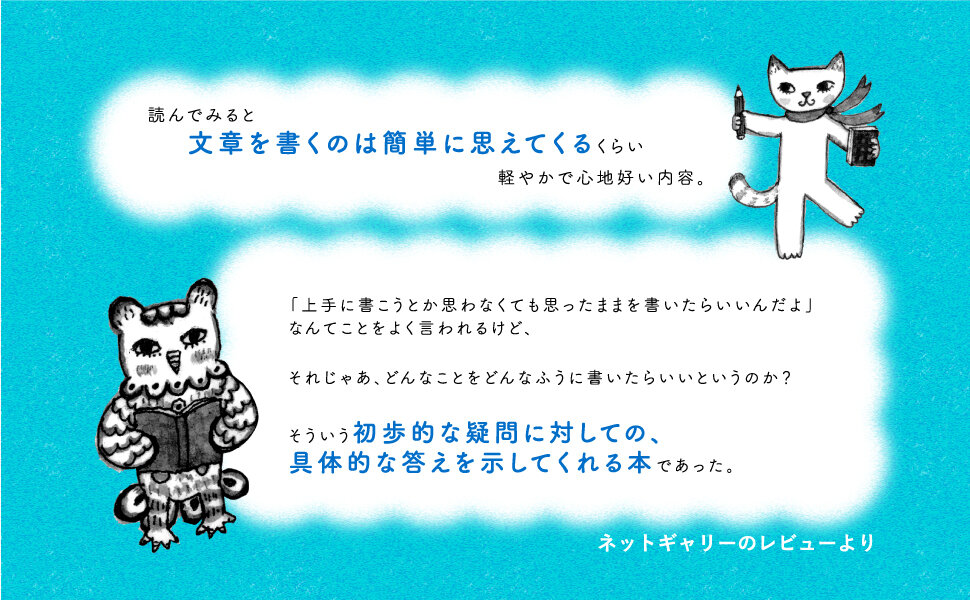 (皆様のレビューより)「思ったままを書いたらいいんだよ」なんてよく言われるけど、何をどんなふうに書いたらいいというのか? そういう初歩的な疑問に対しての、具体的な答えを示してくれる本であった。/綴られている言葉が優しくて、読んでいて心地いい。教室で先生が穏やかな笑顔を浮かべて生徒たちに教えている、そんな語りで。声に出して読みたいなって思うリズムのよさでとても好き。「書いてみようかな」という気持ちになる、子どもでも大人でも、心にプラスの影響を与えてくれる素敵な本。/読んでみると文章を書くのは簡単に思えてくるくらい軽やかで心地好い内容。