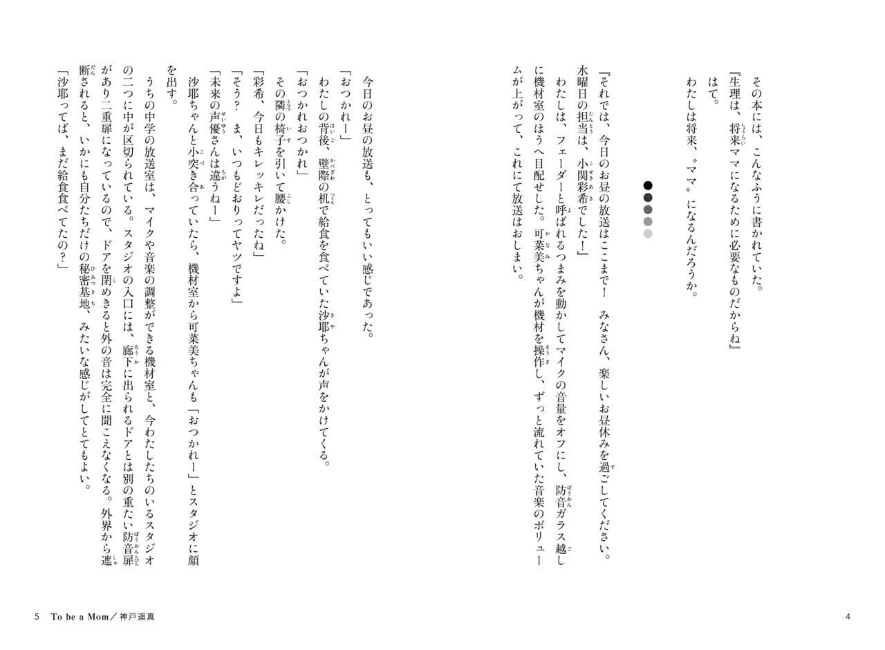生理は、将来ママになるために必要なものだから──そう本には書かれていた。でも、わたしもママにならないといけないの? 子どもが欲しい友達、怖いと言う友達。わたしは?(『To be a Mom』神戸遥真)