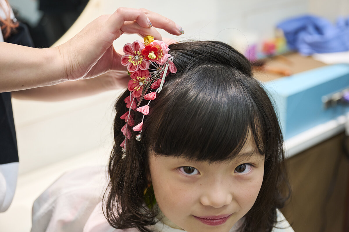 最後の仕上げ! 大きめ髪飾りで、一気にハレの日仕様に