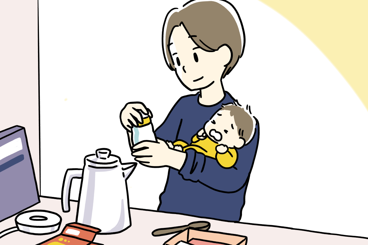 ミルク授乳の場合は、ママの外出時や夜中の授乳を担当するほか、ミルクの準備や哺乳瓶の洗浄・消毒などを担当することもできます。出産前から授乳のキホンはママだけでなく、パパも積極的に学んでおくといいですね。