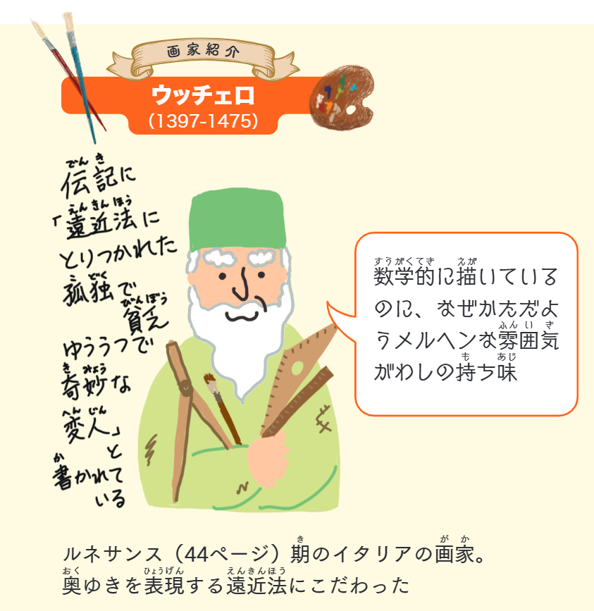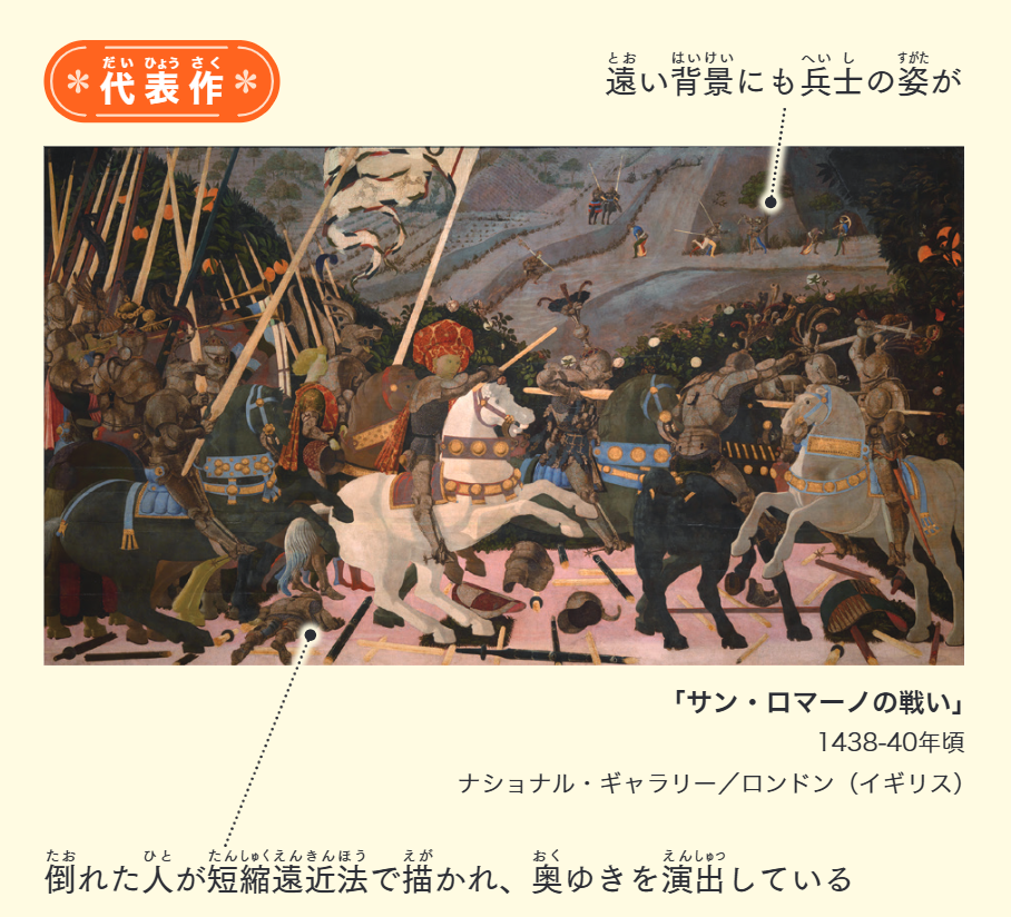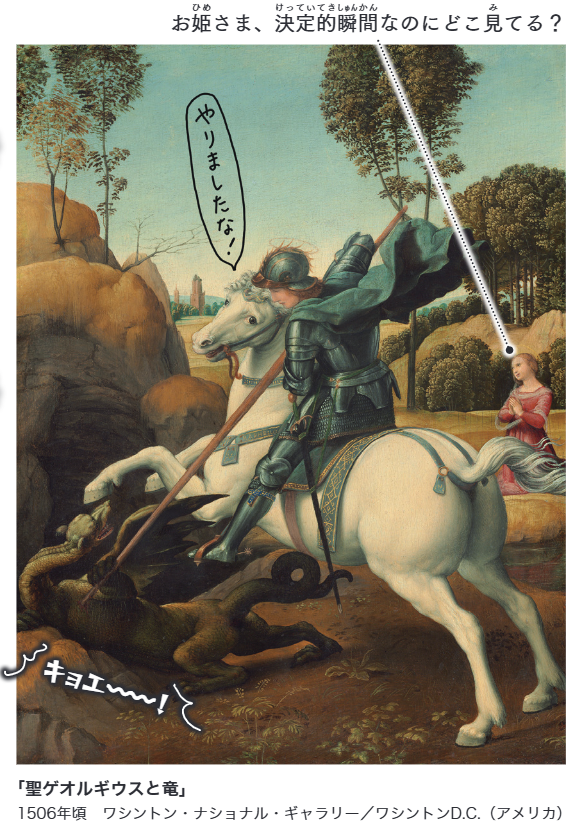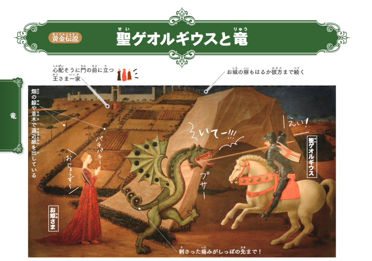 聖ゲオルギウスと竜」は、ウッチェロの他にも、ラファエロなどの画家が描いている有名な伝説なんだ!
