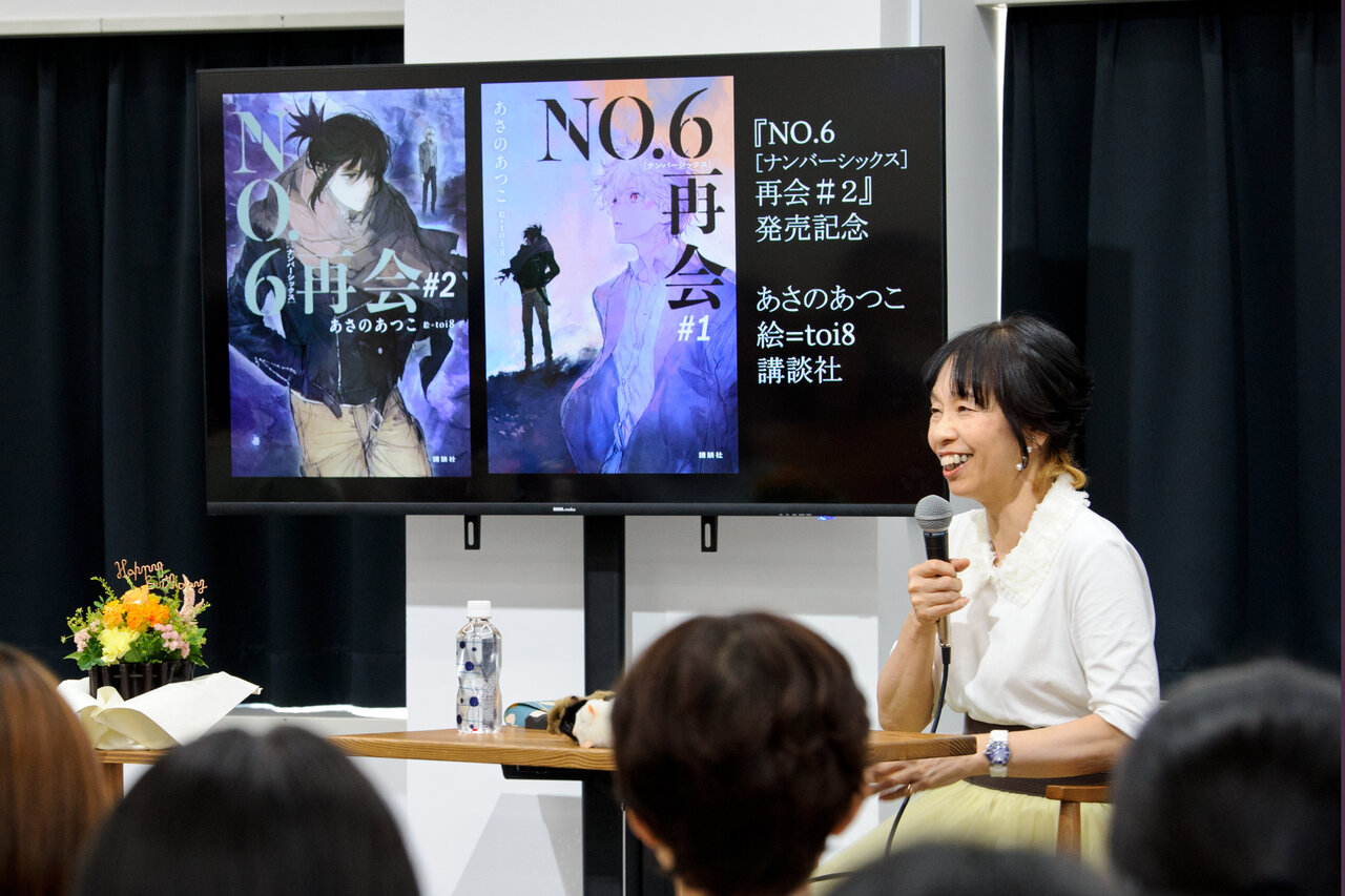この記事では、『NO.6[ナンバーシックス]再会#2』の発売を記念し、ジュンク堂書店池袋本店でおこなわれた、あさのあつこさんのトーク&サイン会の様子をレポートします。後編は作家としての心構えや、紫苑とネズミのキスについて、また混乱する世の中で私たちができることなど、さらにディープなお話を伺いました。