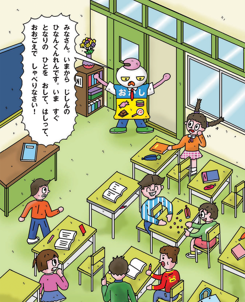 「きょうしつを でたら、すぐに もどり、