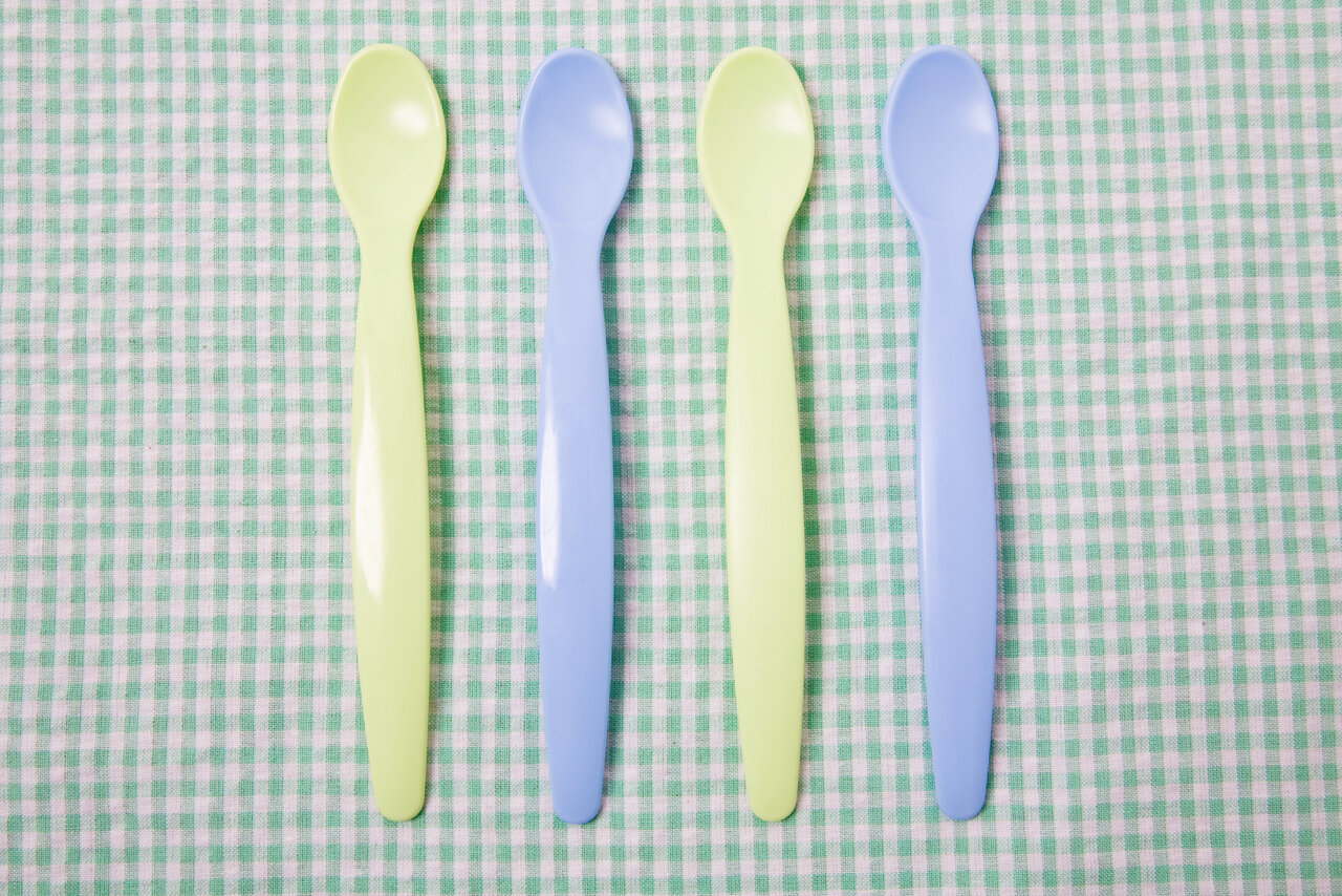 大人が食べさせやすいように柄は長め、小さいスプーンがいいです。最初は食べ物を取り込みやすい平たいスプーンを使いましょう。離乳食後期には、赤ちゃんが握る用の短くて丸いスプーンを用意しておくと、自分で食べる練習につながります。