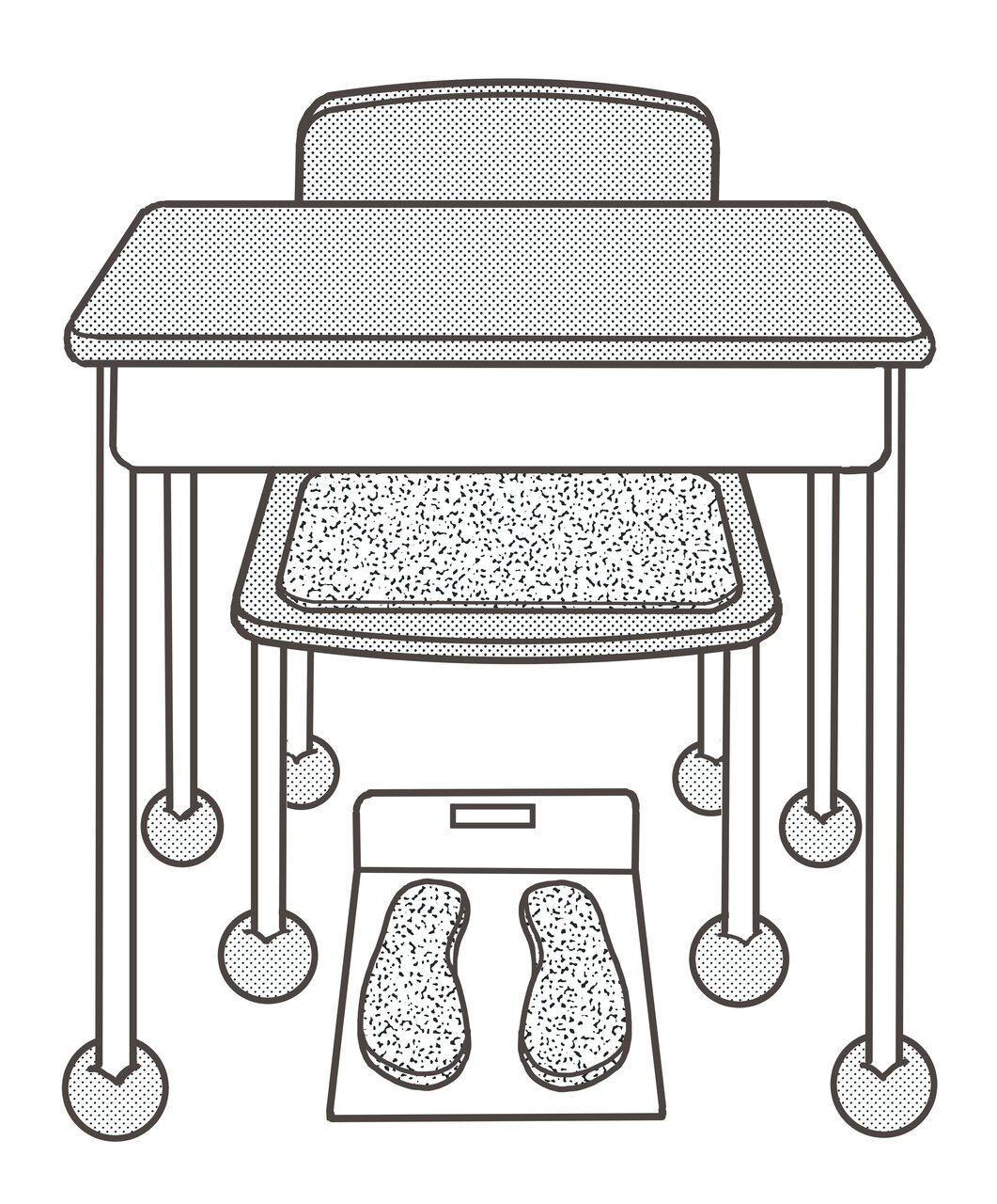 2016年、四国のある小学校の2年生の教室を訪れたとき、私は目を疑いました。子どもたち全員の机の下に、足型が置かれていたのです(イラスト参照)。 「何ですかこれ?」と尋ねると、学校を案内してくれた先生はこう答えました。 「この位置に足をちゃんと置いて座れ、という指示なんです」