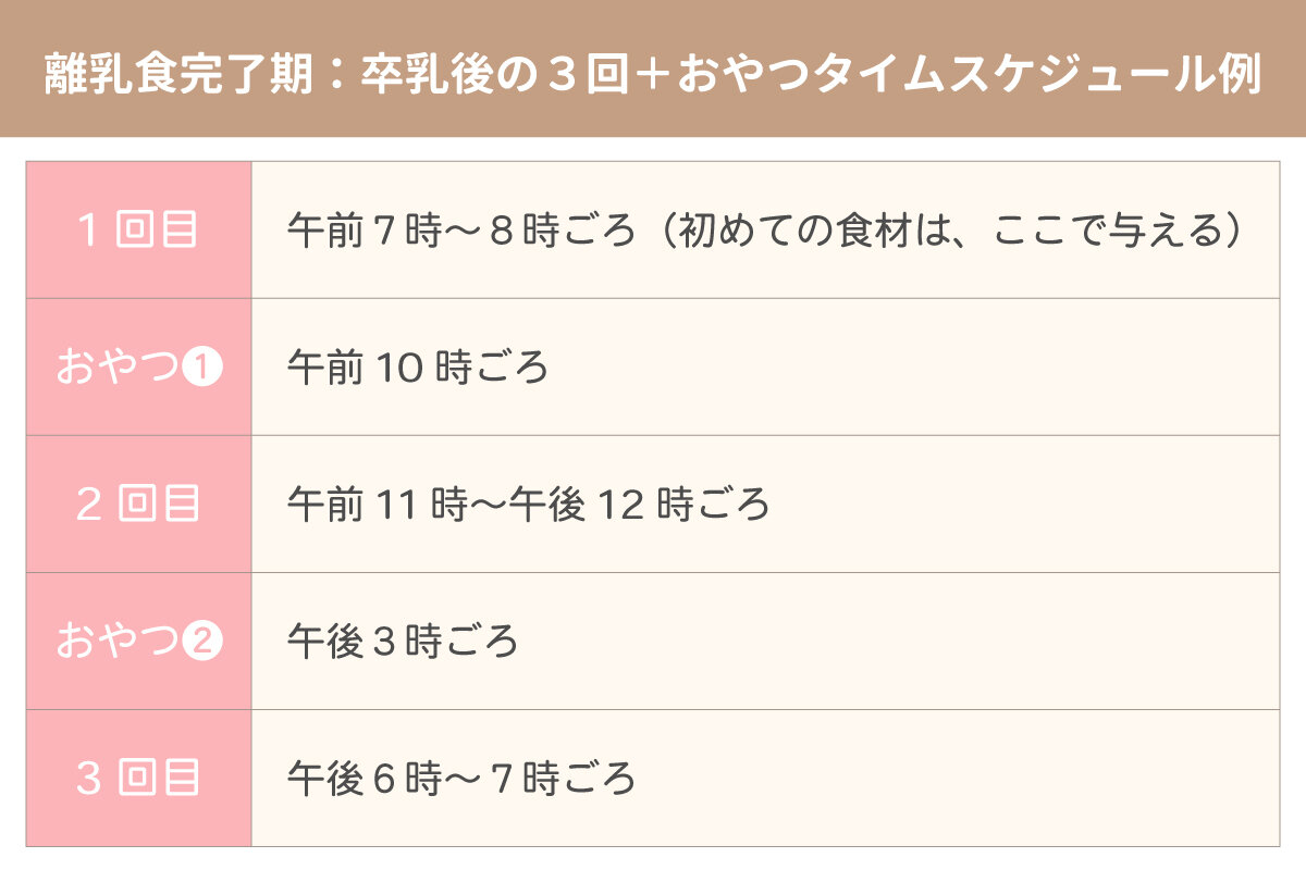 なお、卒乳後の赤ちゃんには、下記のスケジュールを参考にしてください。