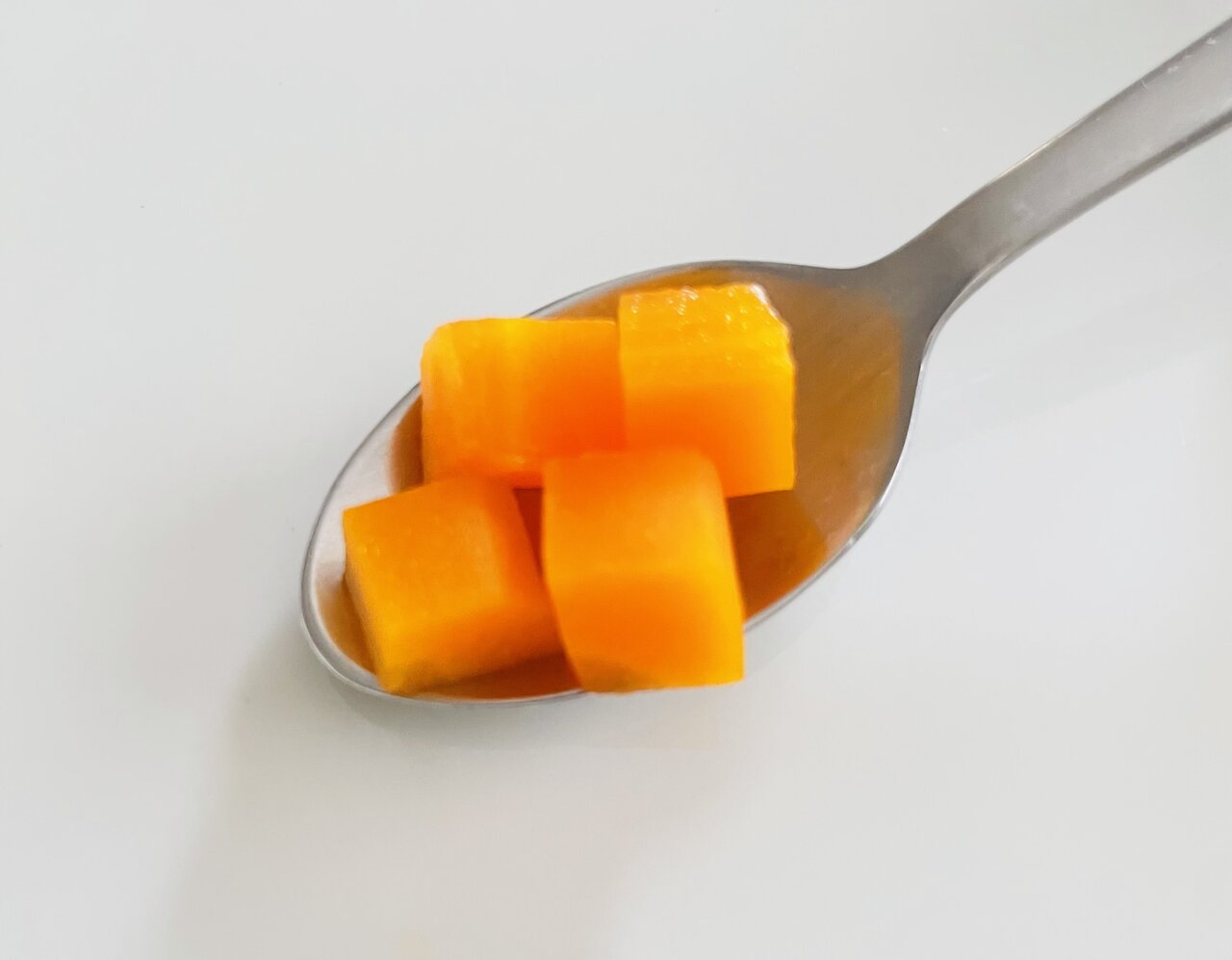 「歯ぐきでかめる、またはスプーンで簡単に切れるくらいのやわらかさが目安です。