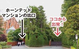 スタートは、ファンタジーランドのアトラクション「ホーンテッドマンション」の出口付近。