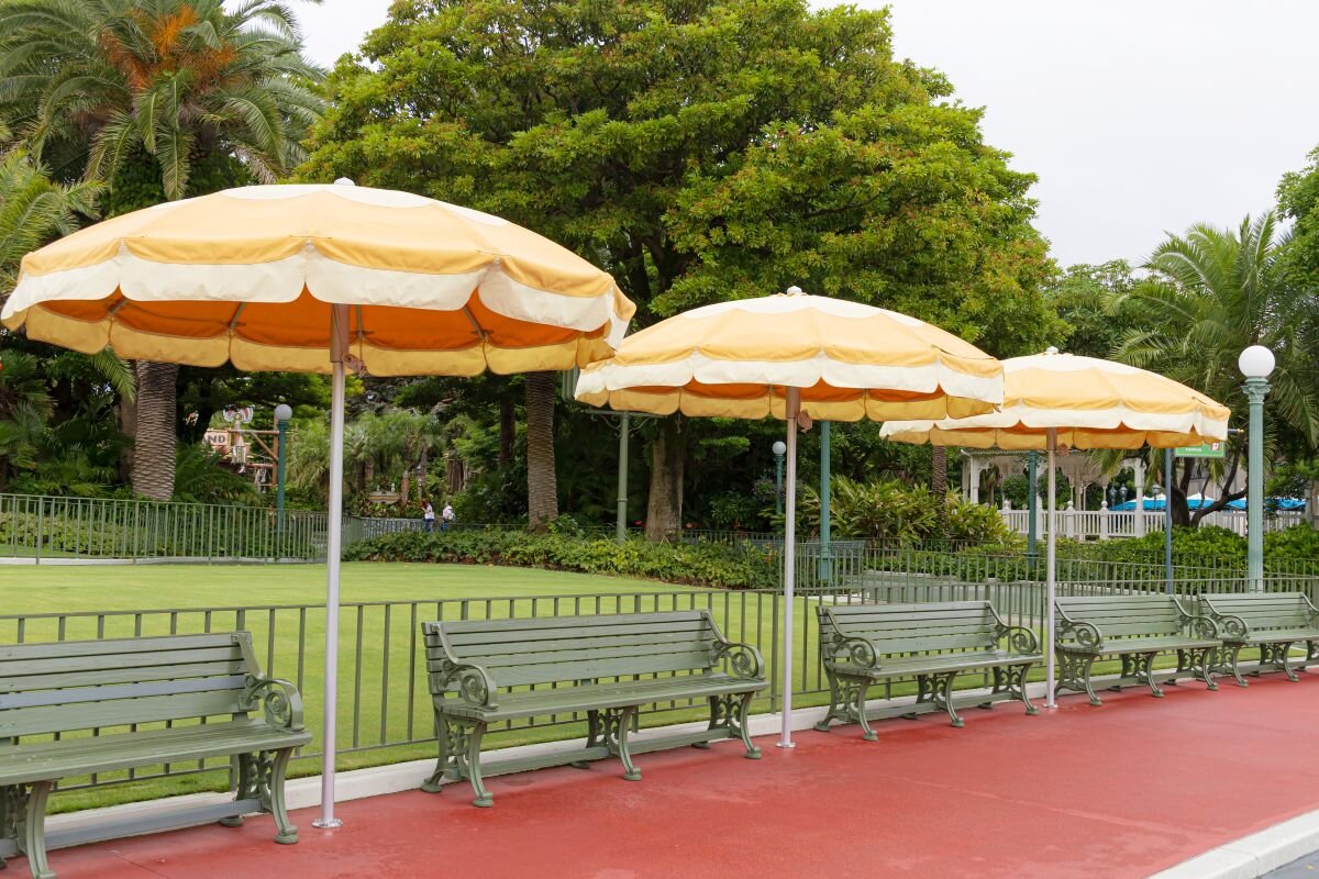 また、パレードルート沿いにベンチがある場合は、ベンチに座って観ることもできます。