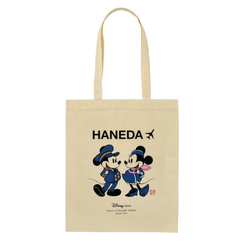 「HANEDA」の文字がデザインされた、前回人気のトートバッグとキーチェーンも、パイロット姿と客室乗務員のミッキー&ミニーのデザインです。