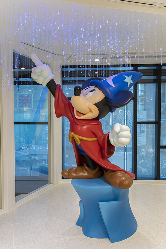 このディズニーフラッグシップ東京は地上2階、地下1階からなる大型店舗で、豊富なグッズが揃います。また商品だけでなく、店内装飾も見どころたくさん! 特に2階に設置された「魔法使いの弟子」に扮したミッキーマウスのスタチューは、このお店のシンボルともいえる存在です。