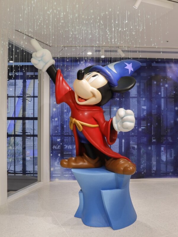 このディズニーフラッグシップ東京は、地上2階、地下1階からなる大型店舗で、豊富なグッズが揃います。また商品だけでなく、店内装飾も見どころたくさん! 特に2階に設置された「魔法使いの弟子」に扮したミッキーマウスのスタチューは、このお店のシンボルともいえる存在です。