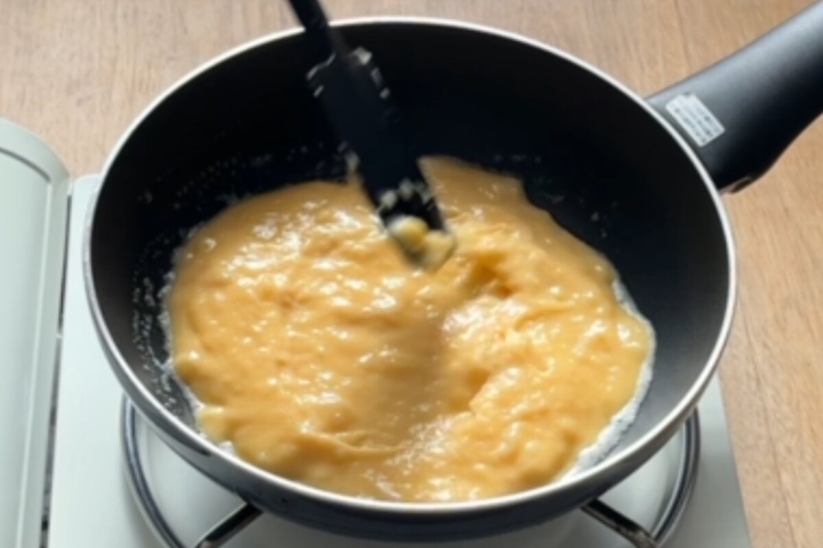 お餅は切ったら電子レンジへ。とろとろに溶けた生地に卵を混ぜるだけの超簡単レシピは、外はこんがり、中はもっちりの新食感スイーツに大変身! パンで作るフレンチトーストよりリピートしちゃうかも!?