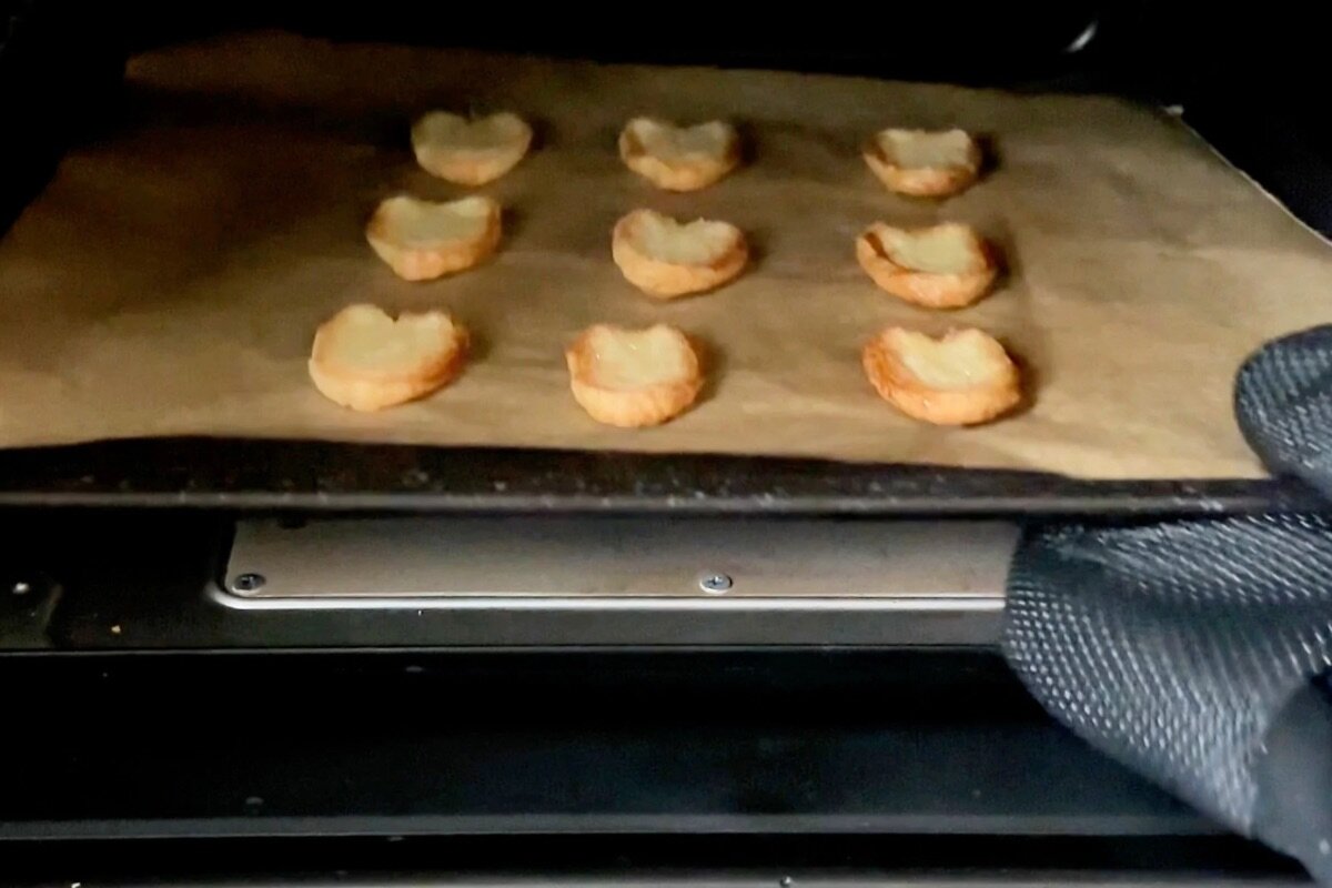⑦190℃に予熱したオーブンで20分焼く。焼けたら粗熱が取れるまで天パンの上で冷ます。