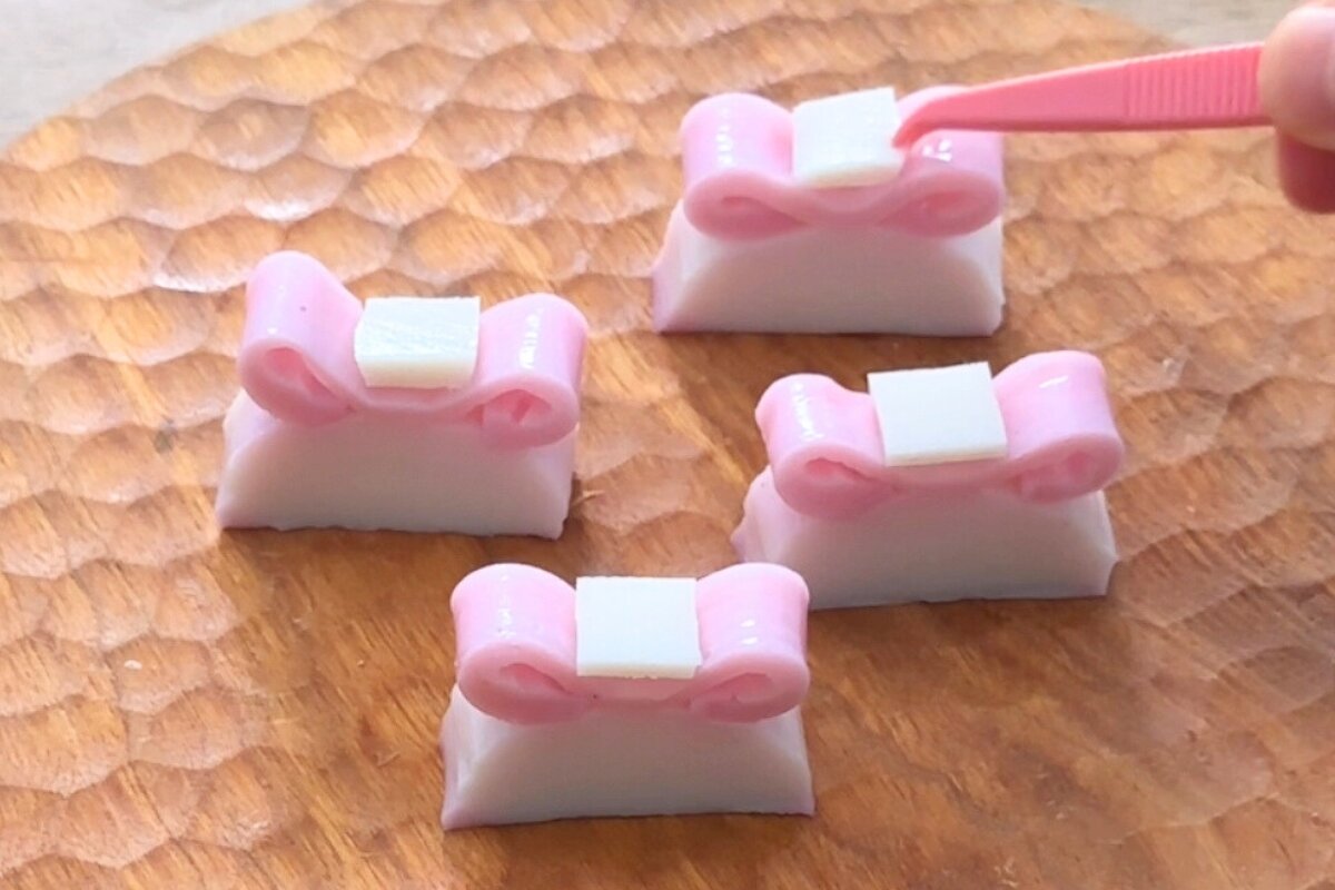 ピンク色の部分は薄く切るほど、リボンがきれいに仕上がります。