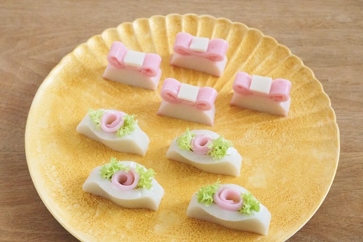 ③1cm角に切った白かまぼこを②の中央にのせたら完成。
