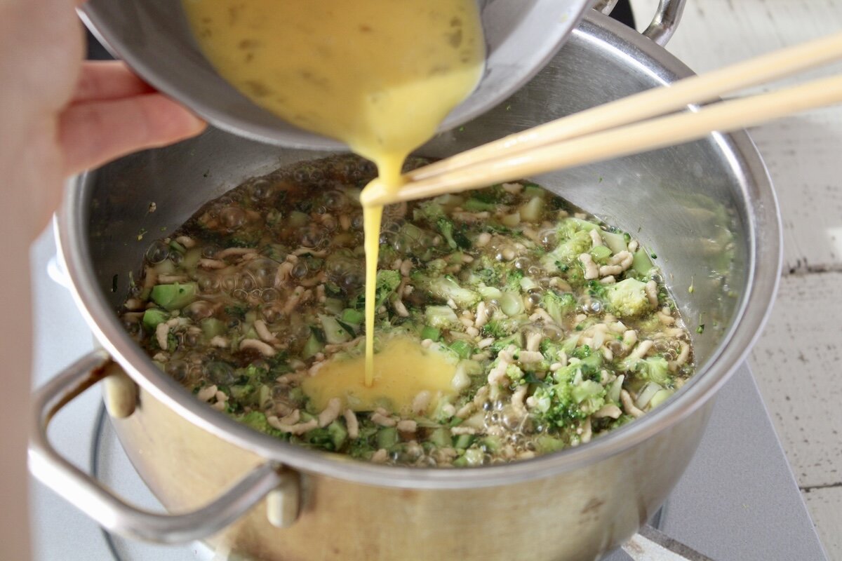 ふたつめのレシピは、溶き卵で仕上げた「ブロッコリーのそぼろかきたま」です。