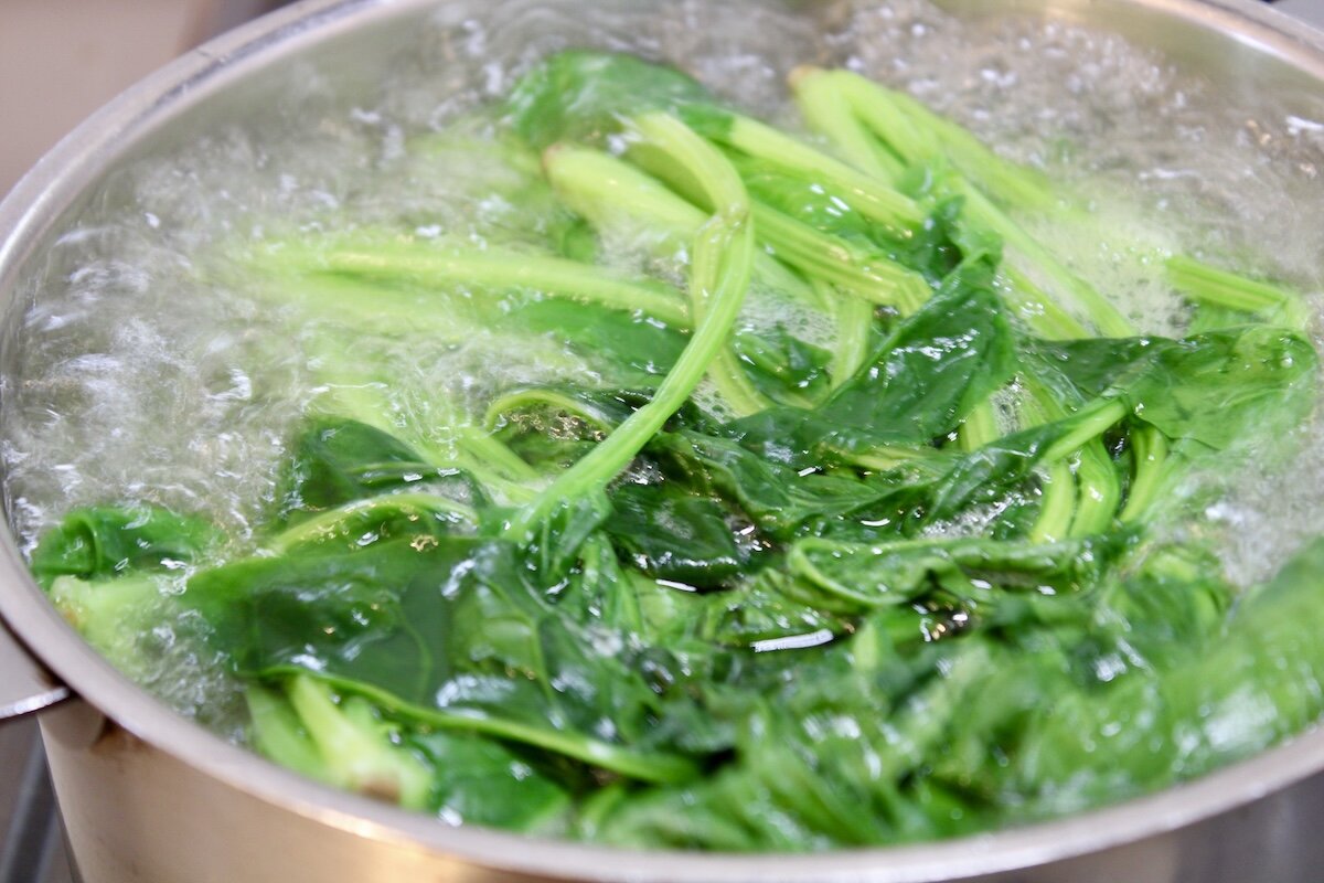 →ほうれん草をゆでる時間は1~2分が目安ですが、繊維が気になる場合は少し長めにゆでると柔らかくなります。ただし、ゆですぎると水溶性ビタミンが流出するため注意が必要です。