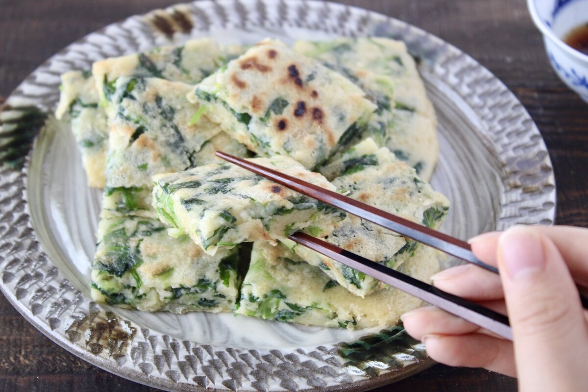 ほうれん草のチーズチヂミ。   真:越野美樹
