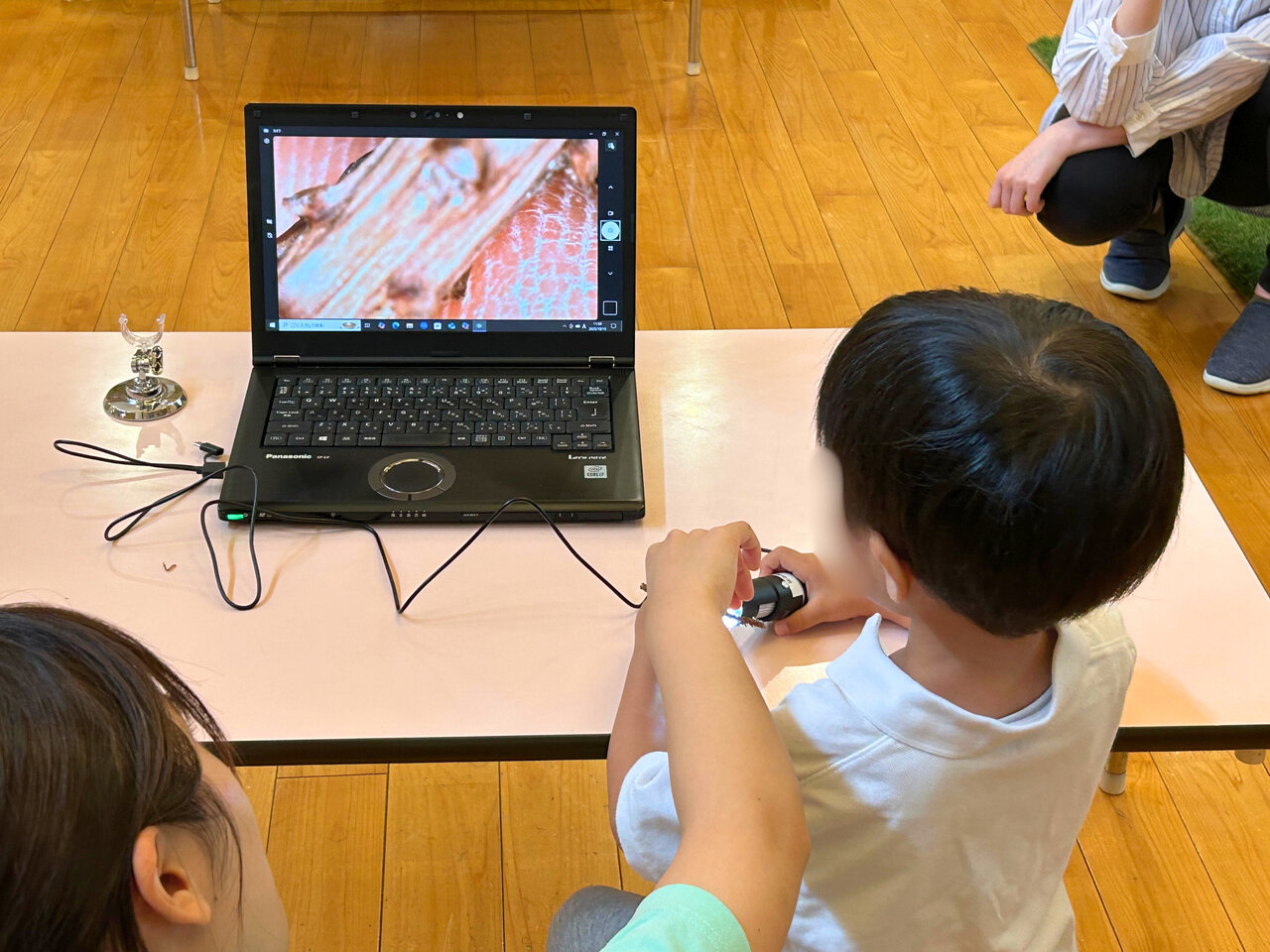 「Bちゃんは前回まですごく緊張していたので、今日もどうかな……と思っていましたが、途中からニコニコして、たくさん感想を話してくれました。マイクロスコープも積極的に動かし、いろいろな角度から観察していました」