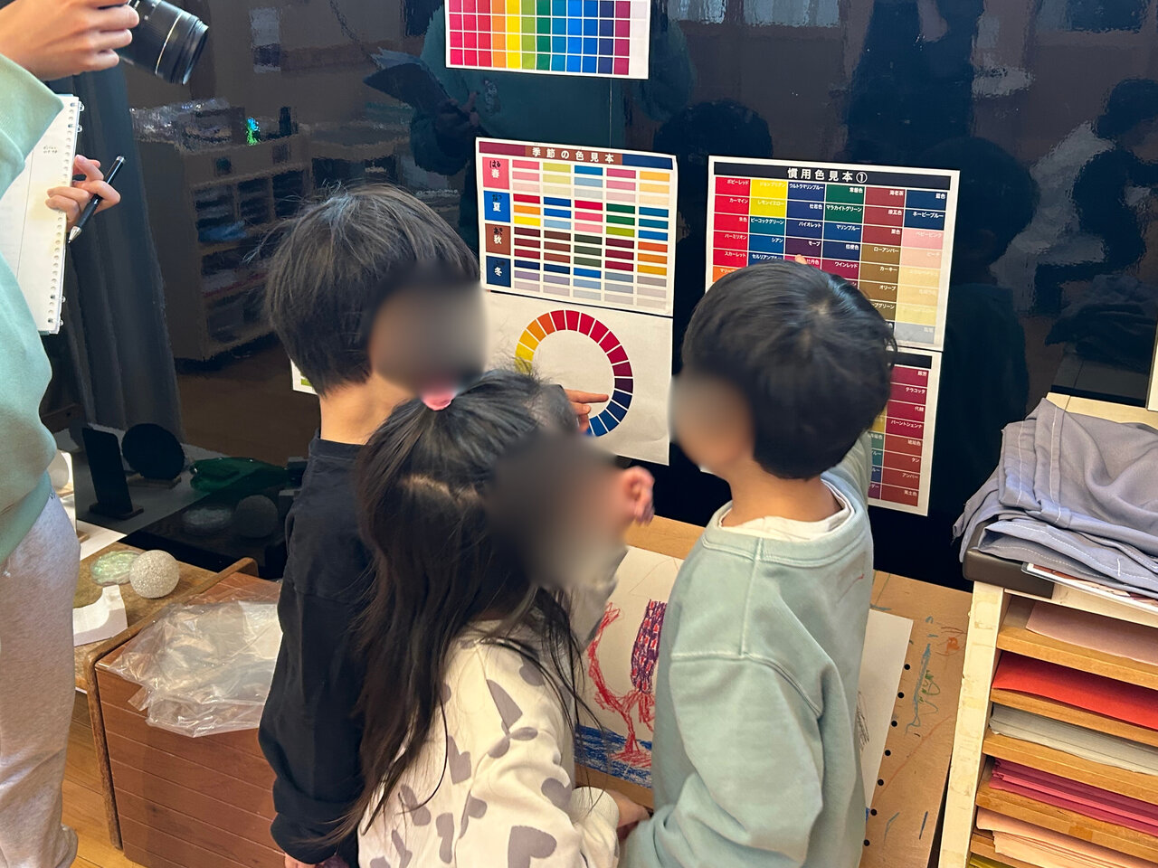 2025年度の4歳児クラスのテーマも3歳児と同様に「自然」ですが、子どもたちが特に色への関心を高めていたことから、グループ別に探究する「色」を決め、その色の自然を観察することで活動を進めました。