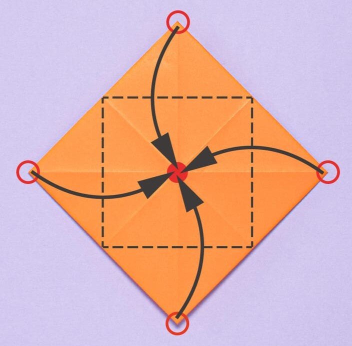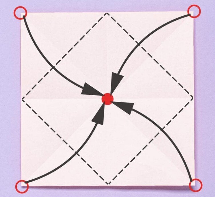 ⑨残りの3ヵ所も、手順⑦~⑧と同じように折る。