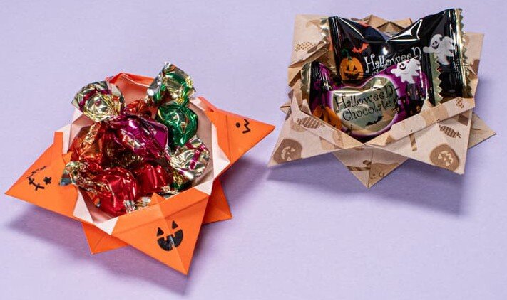 ハロウィンパーティーで大活躍! 折り紙で「お菓子入れ」と「キャンディーカバー」を作ろう〔人気作家のわかりやすい解説付き〕