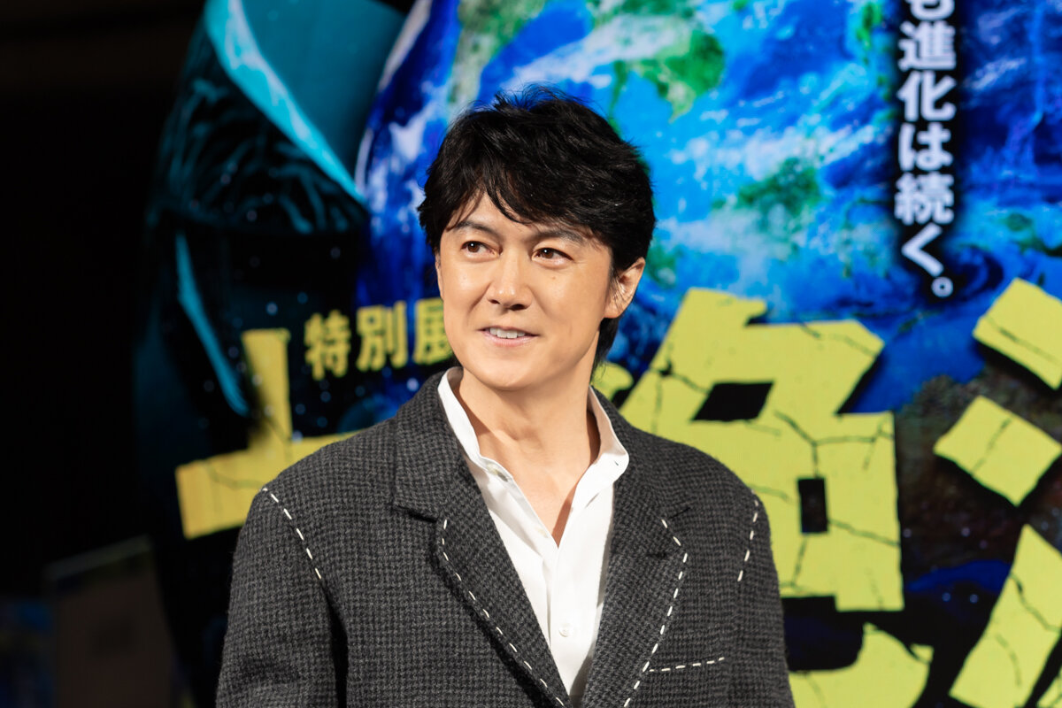 報道発表会には、展覧会のスペシャルナビゲーター福山雅治さんも登壇。福山さんは音声ガイドでナビゲーターを務めるほか、展示映像の一部にも、ナレーターとして出演しています。