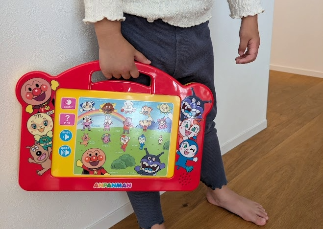 3歳児でも持ち運びができるサイズ・重さの「アンパンマンキッズタブレット」