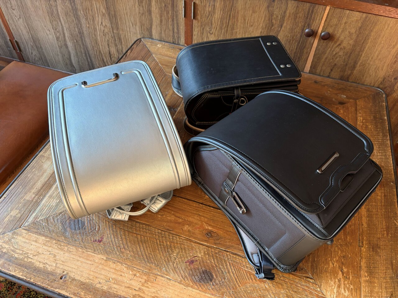 今回は、取材として三男(2026年春入学予定)に試着させるため、depsoa(デプソア)を特別にお貸しいただくことに。借りたランドセルはdepsoa「エッジトーン」のメタルシルバー(税込79,000円)と、約980g(カラビナなど付属品を除く)の最軽量モデル「アクトライト」(税込69,000円)の2アイテムです。