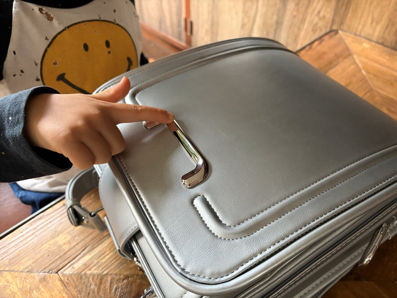 アクトライトで三男が特に気に入ったのは、開閉の錠(じょう)。かぶせから少し顔を出しているベロを下にクイッと引っ張るだけで、スッと開けられます。この開ける感触が楽しいようで、何度も試していました。