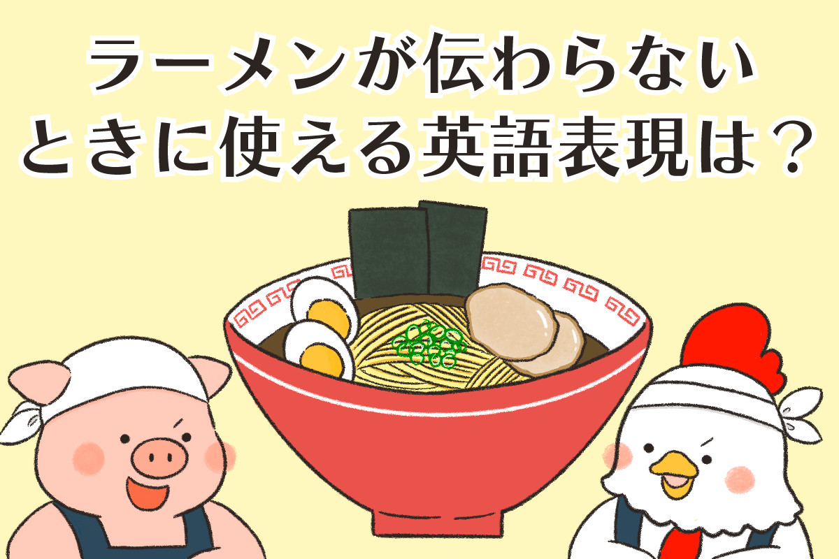 こんなときは、麺を表すnoodleと説明したいところですが、それでは不十分。〈ramen noodles〉と日本語と英語を混ぜて伝えると、ネイティブとしっかり言葉とイメージが共有できます。