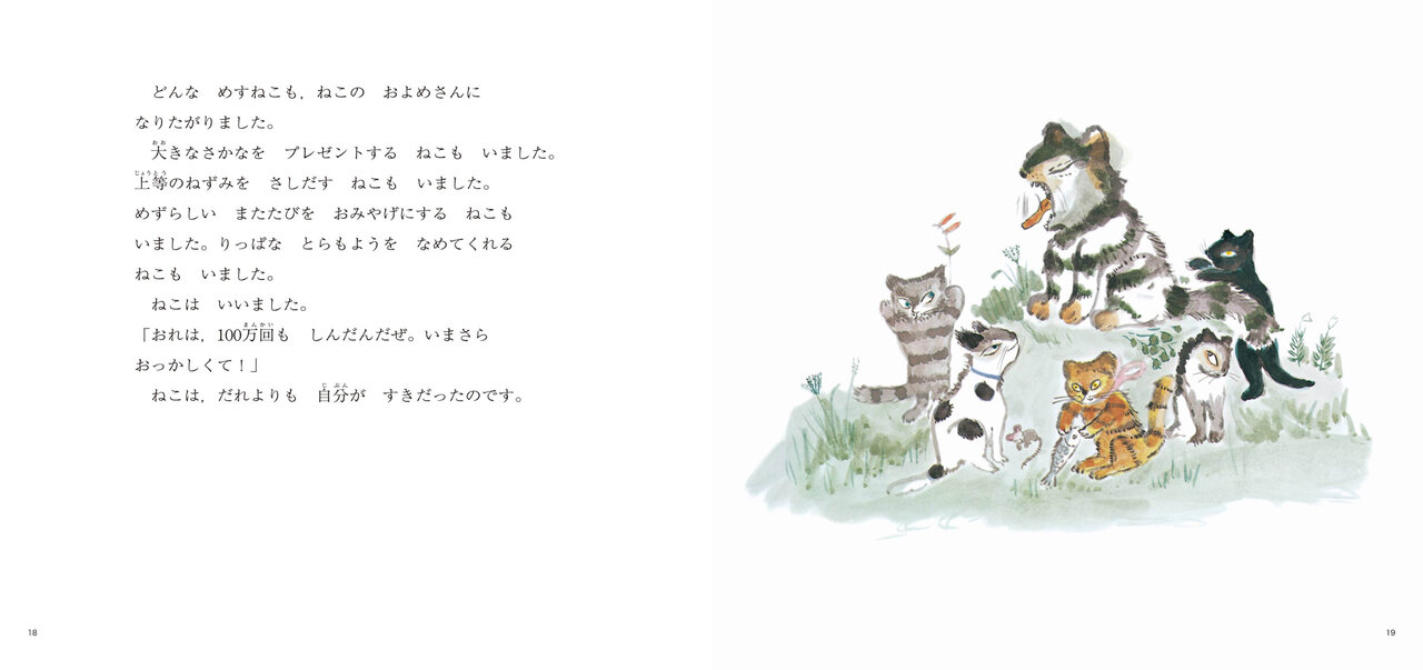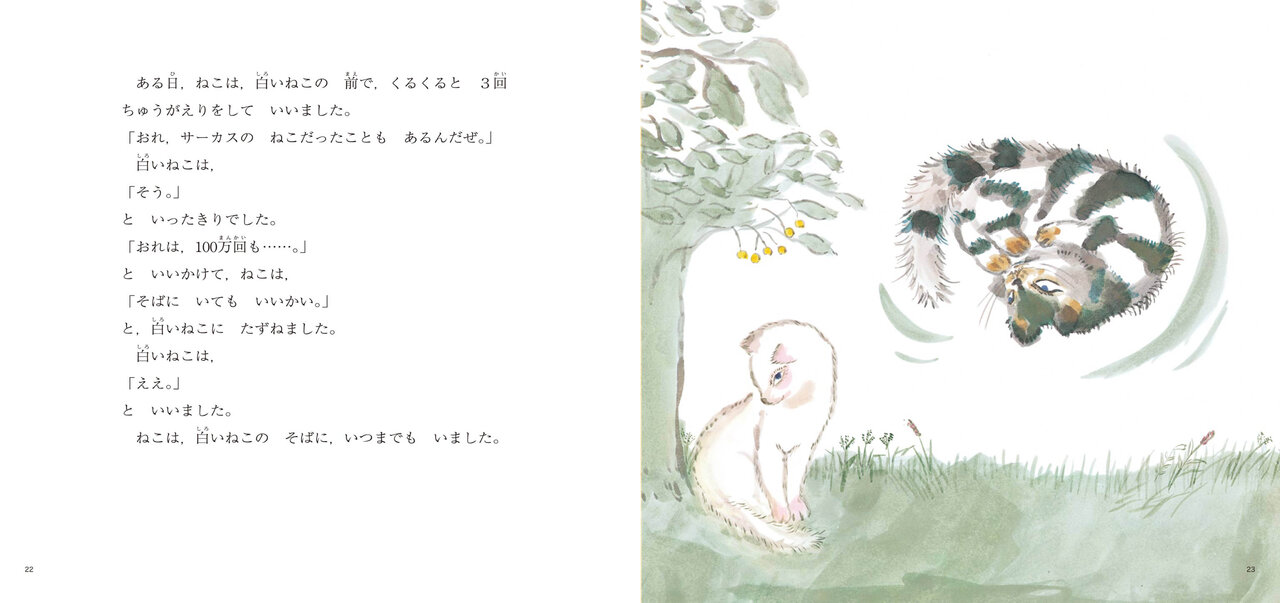 100万人の 人が, そのねこを かわいがり, 100万人の 人が, そのねこが しんだとき なきました。