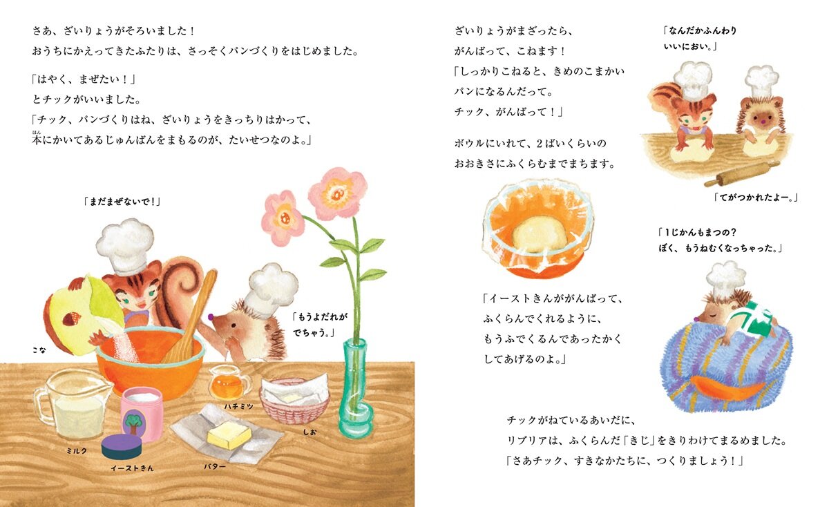 【たっぷり試し読み】かわいいリスとハリネズミがパンづくりに挑戦!