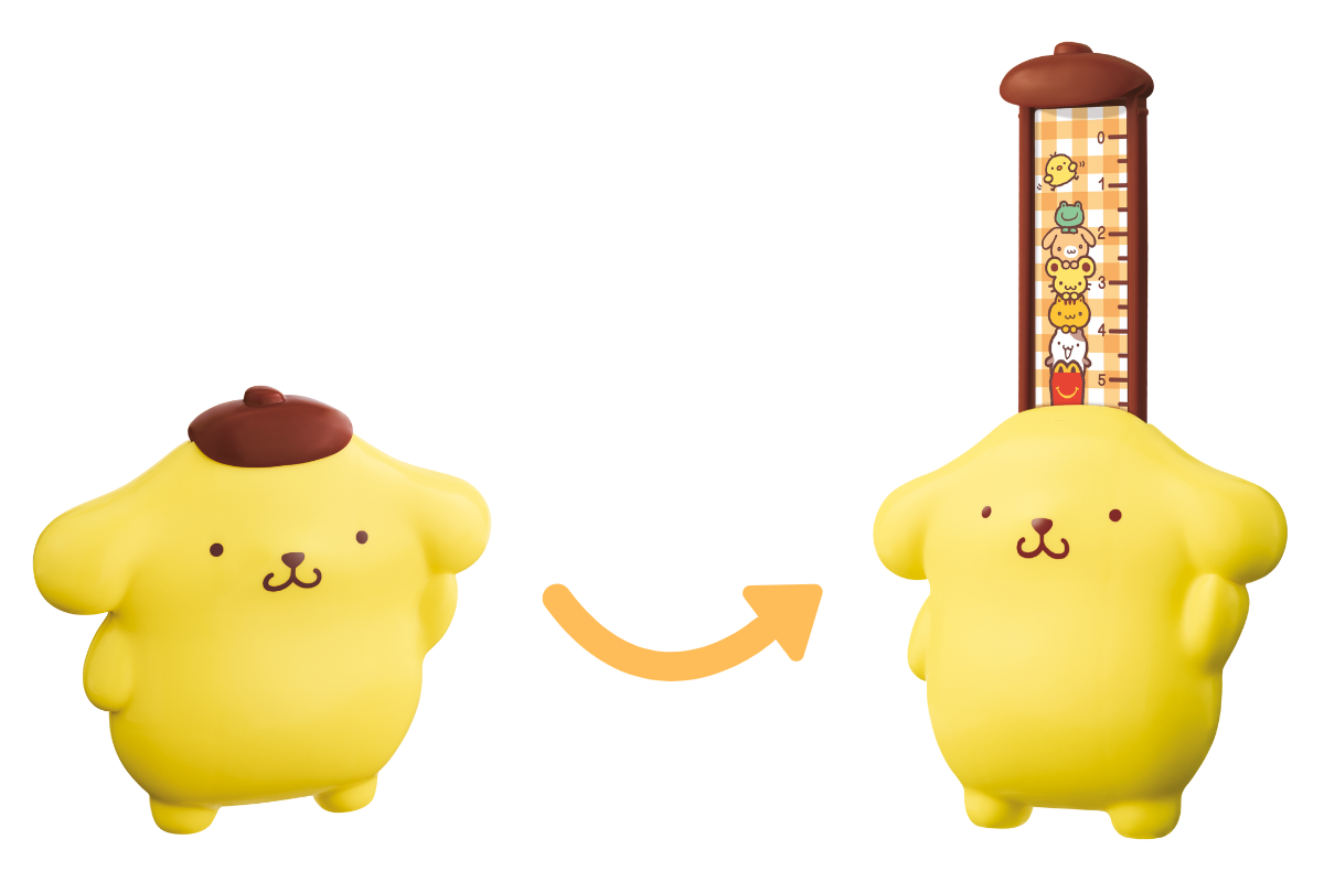 ポムポムプリンの帽子部分を上に引き出すと定規が出てきます! 6cmまでの目盛りが付いています。定規の絵柄もかわいいですね!