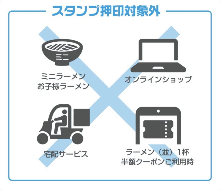 小さなお子さんがいるご家庭では、「お子様ラーメン(KOTTERIキッズ)」が対象外である点に特にご注意ください。スタンプを集める際は、大人のラーメンや定食をご注文ください。
