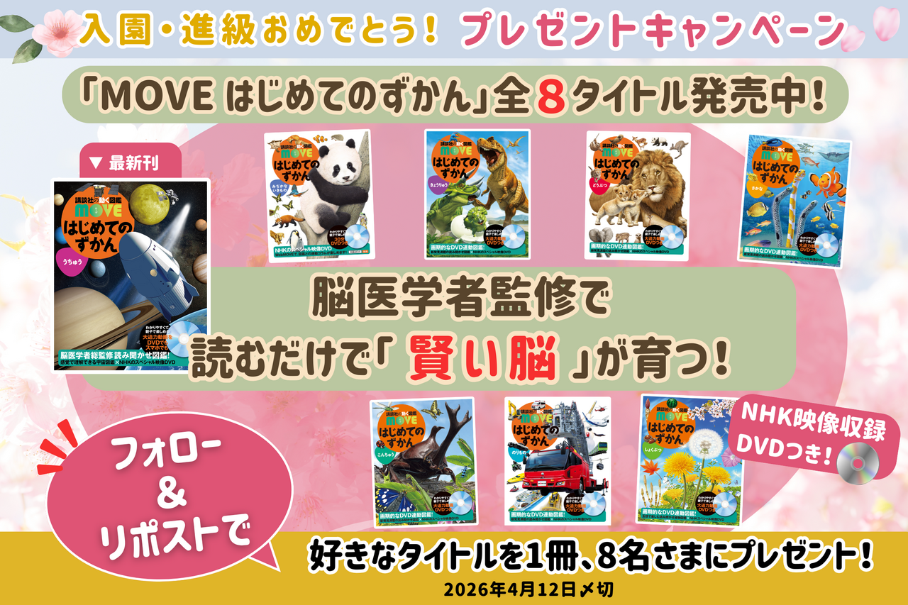 MOVEのXをフォロー&リポストすると「はじめてのずかん」シリーズの中から好きなタイトルを1冊、抽選で8名さまにプレゼント!