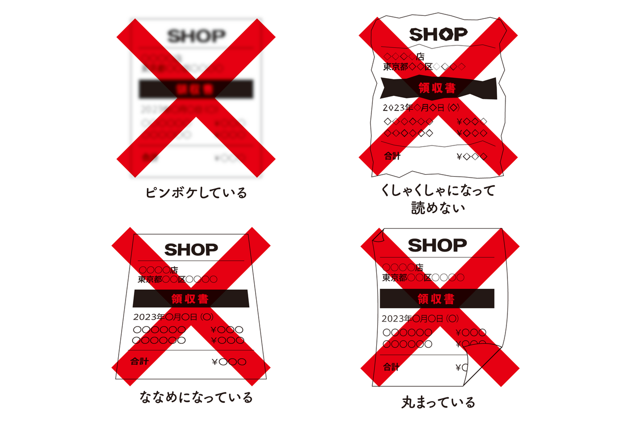 レシートが長い場合は、該当部分以外を折り曲げて撮影してください。