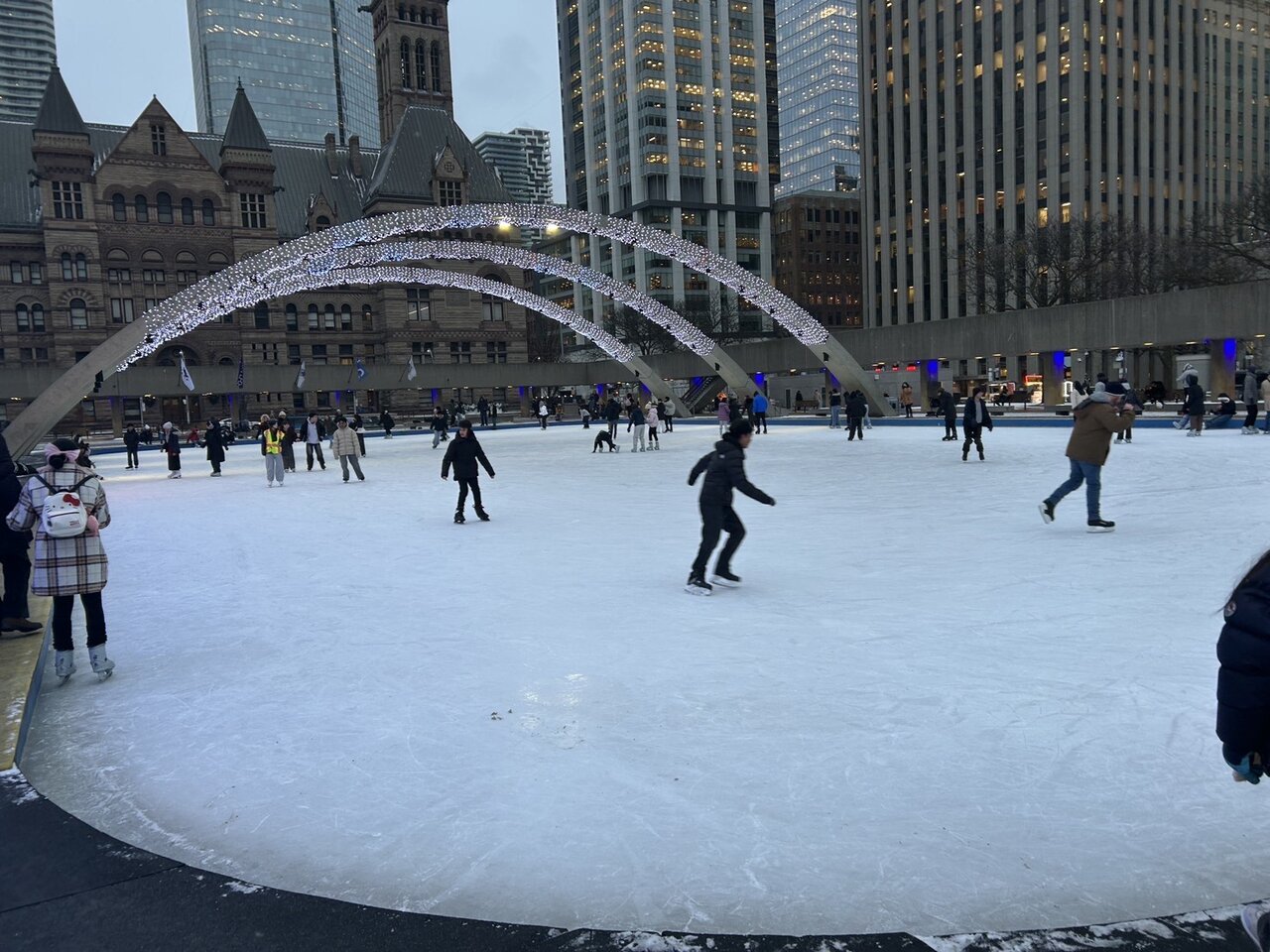 トロントのNathan Phillips Square には有名な屋外スケートリンクがあります。語学学校の先生が連れていってくれたので、人生初のスケートも体験しました。楽しすぎて、トロント滞在中にもう1回行って、2回目には滑れるようになりました。