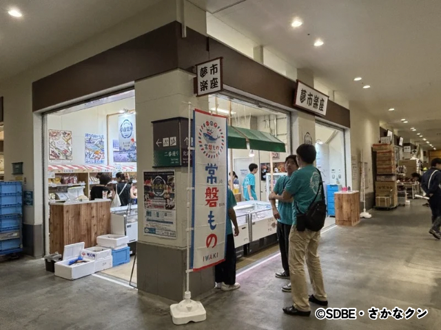 まずは、豊洲市場の『夢市楽座』をみんなで見学。ここは、東日本大震災で被災した岩手県・宮城県・福島県と能登半島地震で被災した石川県を応援するお店です。