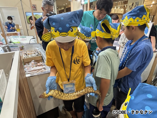 また、さかなクンが、このあとのプログラムで調理する低利用魚のおいしさや魅力を実際の魚を手に取りながら教えてくれました。