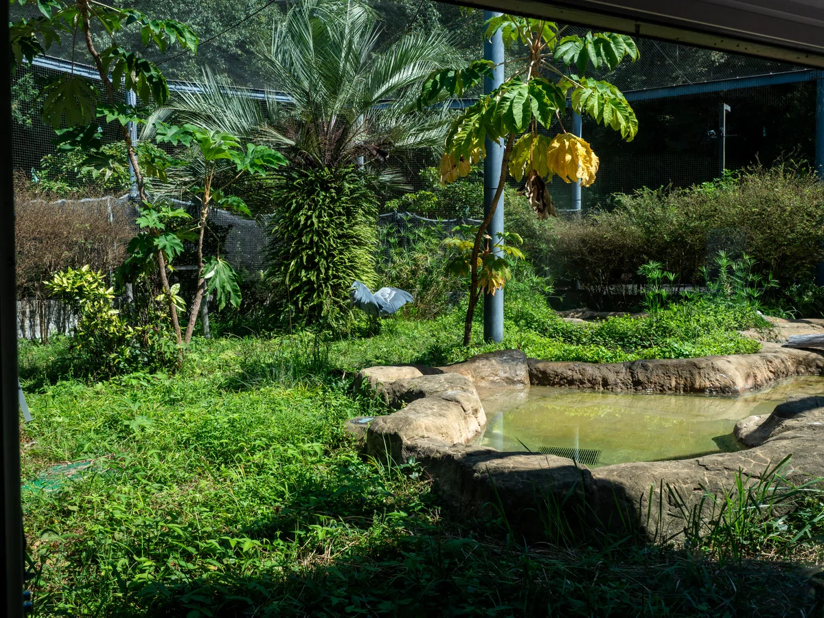 ハシビロコウの生息環境を再現した展示場。
