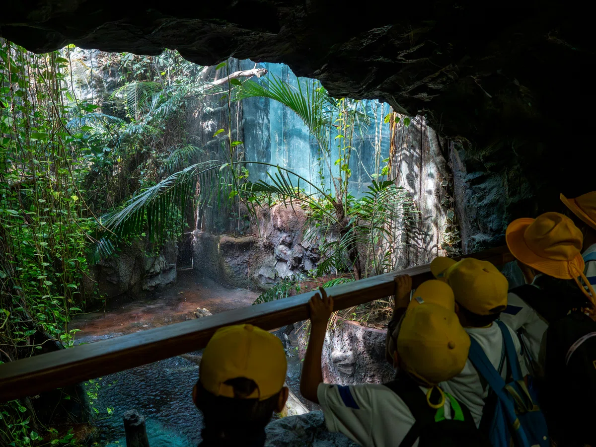 最後に訪れたのはジャングルミュージアムです。ここは地上2階地下1階の国内最大級の熱帯雨林館で、中南米と東南アジアの動物たちを展示しています。一歩入るとまさにそこは熱帯のジャングル。熱帯雨林の環境をリアルに再現しているなと感じました。