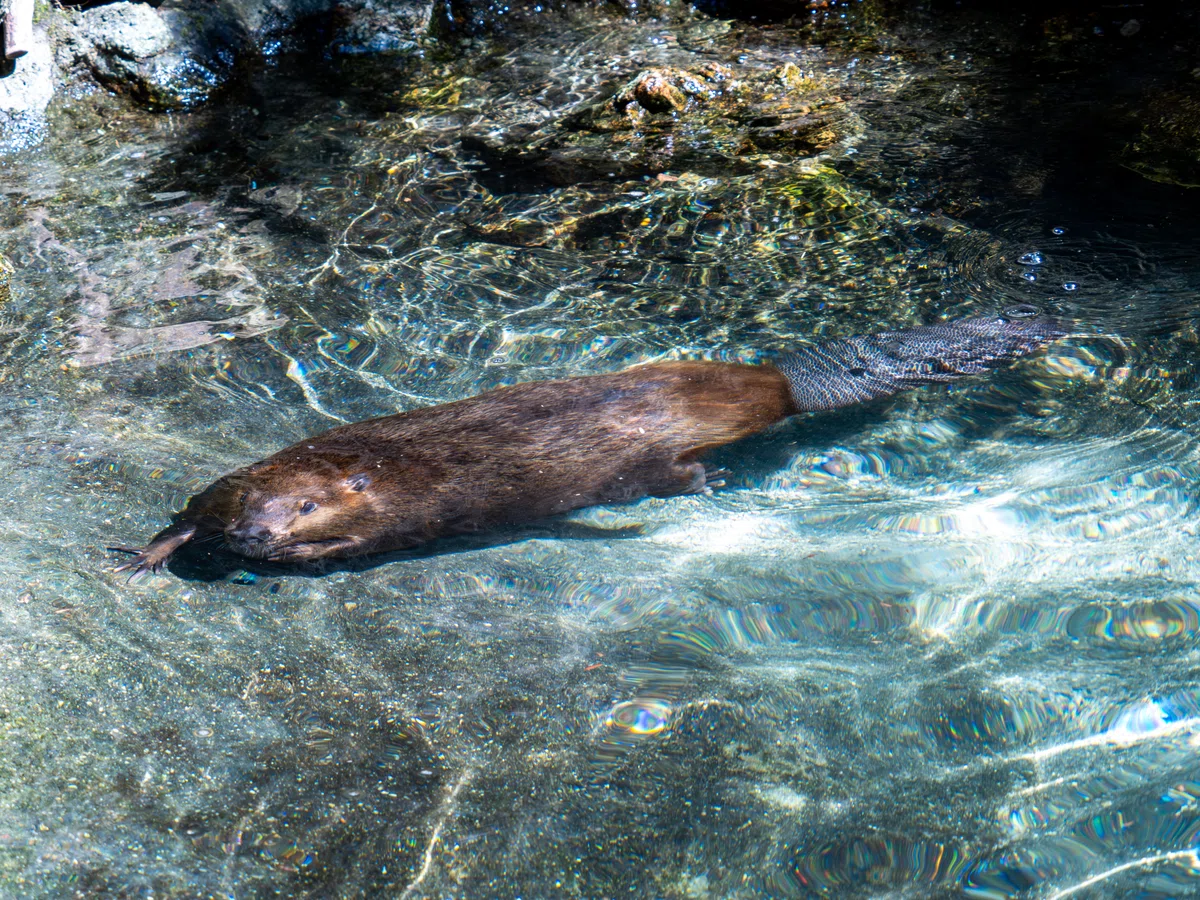 水中を泳ぐアメリカビーバー。こんなきれいな水を泳ぐ姿は他の動物園では見たことがありません。メンテナンスが行き届いているのがよくわかります。