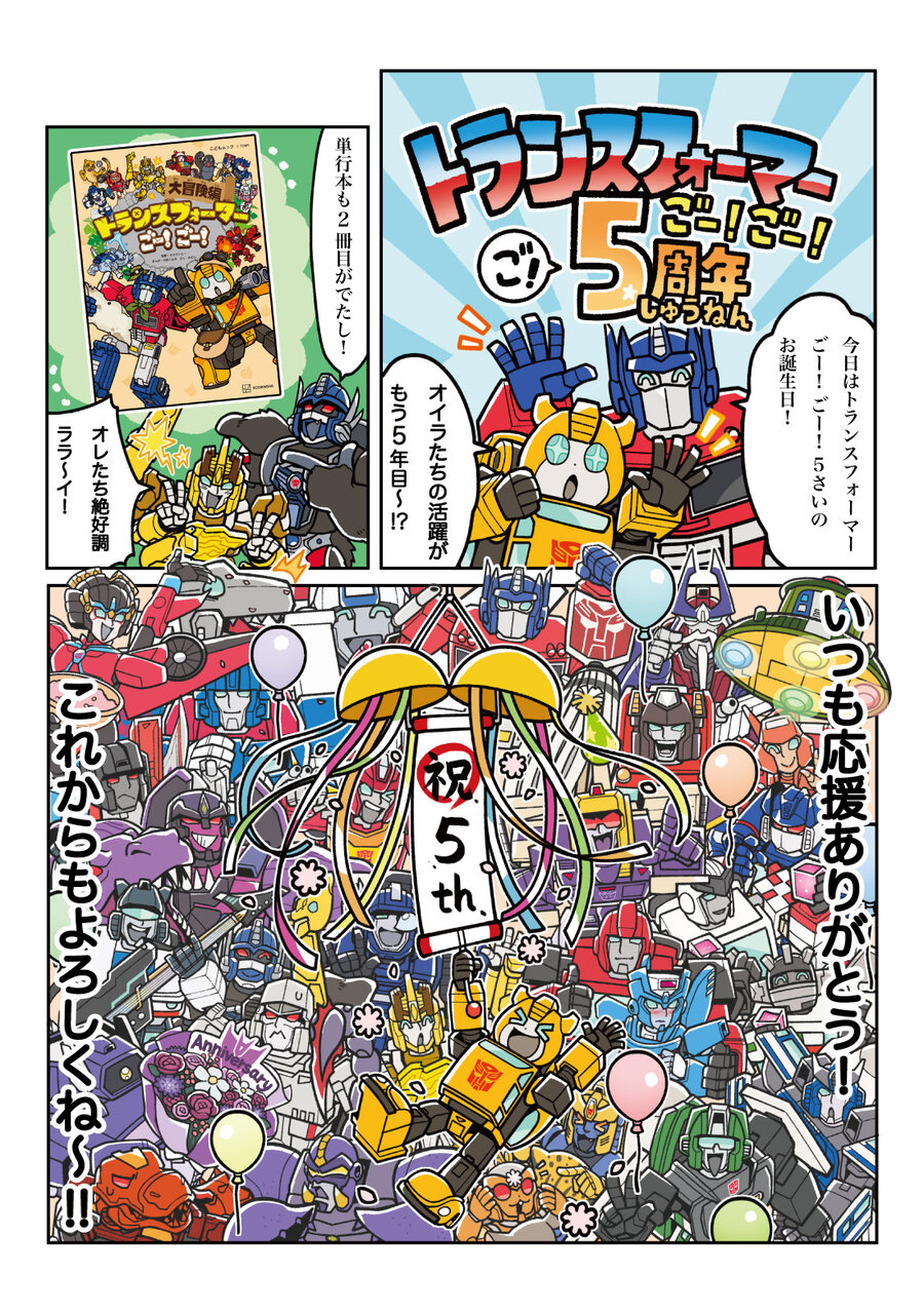 読者のみなさんの応援のおかげで『トランスフォーマーごー! ごー!』も連載スタートから5周年をむかえました!今回はとっておきのお知らせがあります!